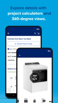Whether you’re a Pro or a have a DIY project on your mind, you can search and shop thousands of products like kitchen appliances, paint, lumber, tools, outdoor power equipment, grills, outdoor furniture, flooring and more— anytime when you’re on the go. We’ve also included larger, zoomable images and 360° spins so you can see every last detail.