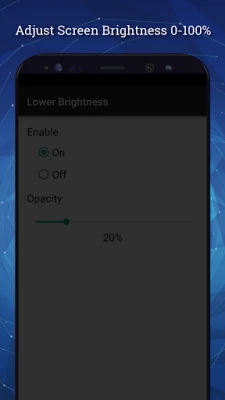 - Easy to use. Just enable and set the percent of brightness level (0-100%)