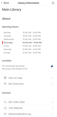 Access Rochester Public Library (MN) from your Android phone or tablet. Manage your account, search the catalog, renew and reserve books.